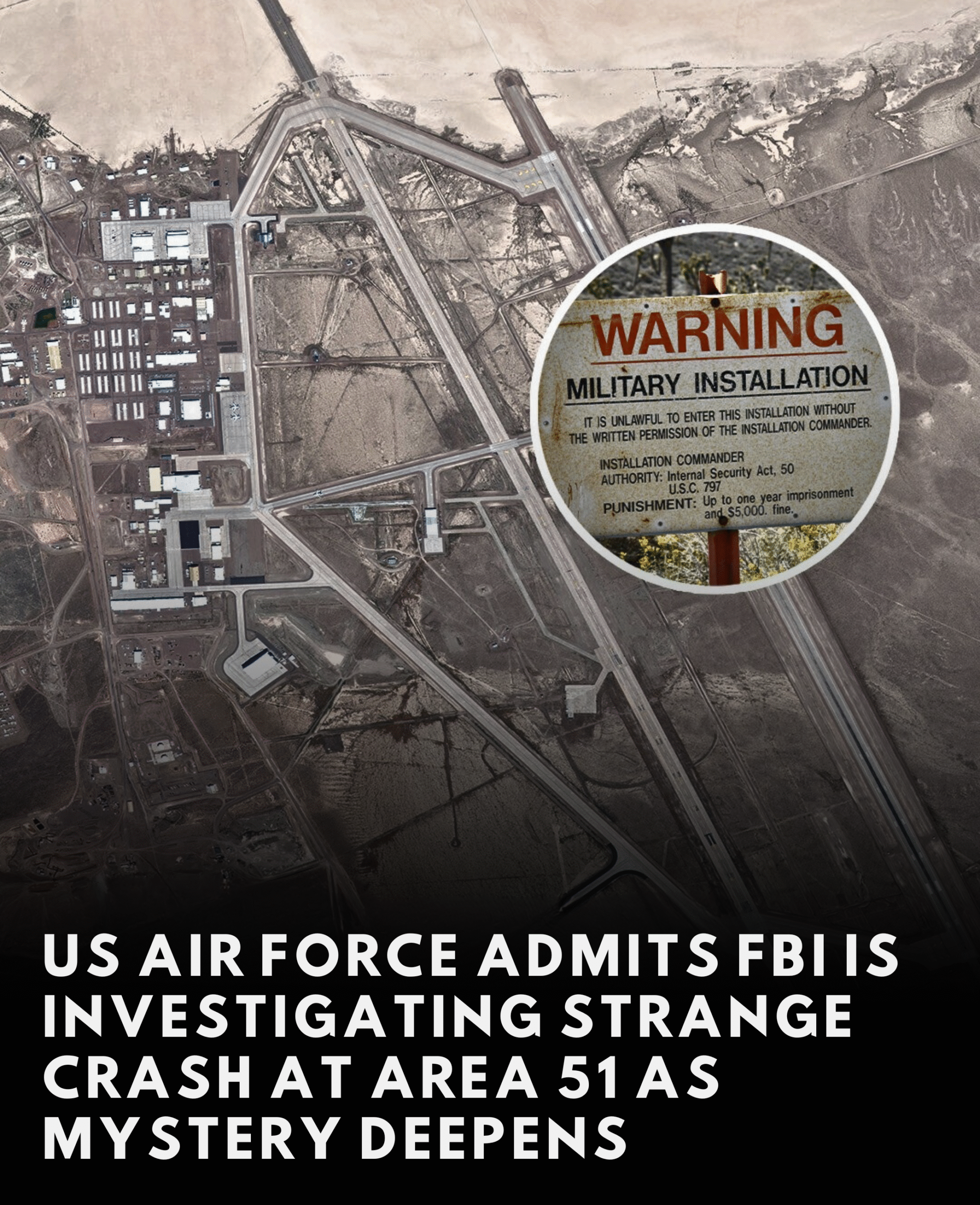 But there has now been something else added to the mystery of the area – a crash that occurred only 12 miles east of the security boundary around Area 51.